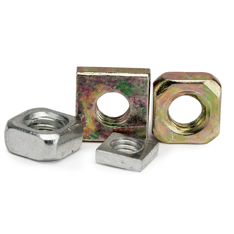 Mae cnau sgwâr DIN577 wedi'u galfaneiddio lliw (wedi'u platio â sinc melyn) yn glymwyr pedair ochr wedi'u crefftio o ddur carbon (ar gael mewn graddau cryfder 4, 8, 10, 12). Mae'r platio sinc melyn yn ffurfio haen sy'n gwrthsefyll cyrydiad, gan eu gwneud yn addas iawn ar gyfer amgylcheddau awyr agored, modurol a diwydiannol. Mae eu siâp sgwâr yn cynnig ardal gyswllt fwy o'i gymharu â chnau hecsagon, gan wella perfformiad gwrth-lacio a sicrhau cysylltiadau sefydlog pan gânt eu paru â bolltau neu wiail edau. Gan gydymffurfio â safon DIN577, maent yn dod mewn meintiau edau metrig (e.e., M3–M36) ac fe'u defnyddir yn helaeth mewn diwydiant trwm (cydosod peiriannau), gweithgynhyrchu modurol (clymu siasi), ac adeiladu (cysylltiadau strwythurol).